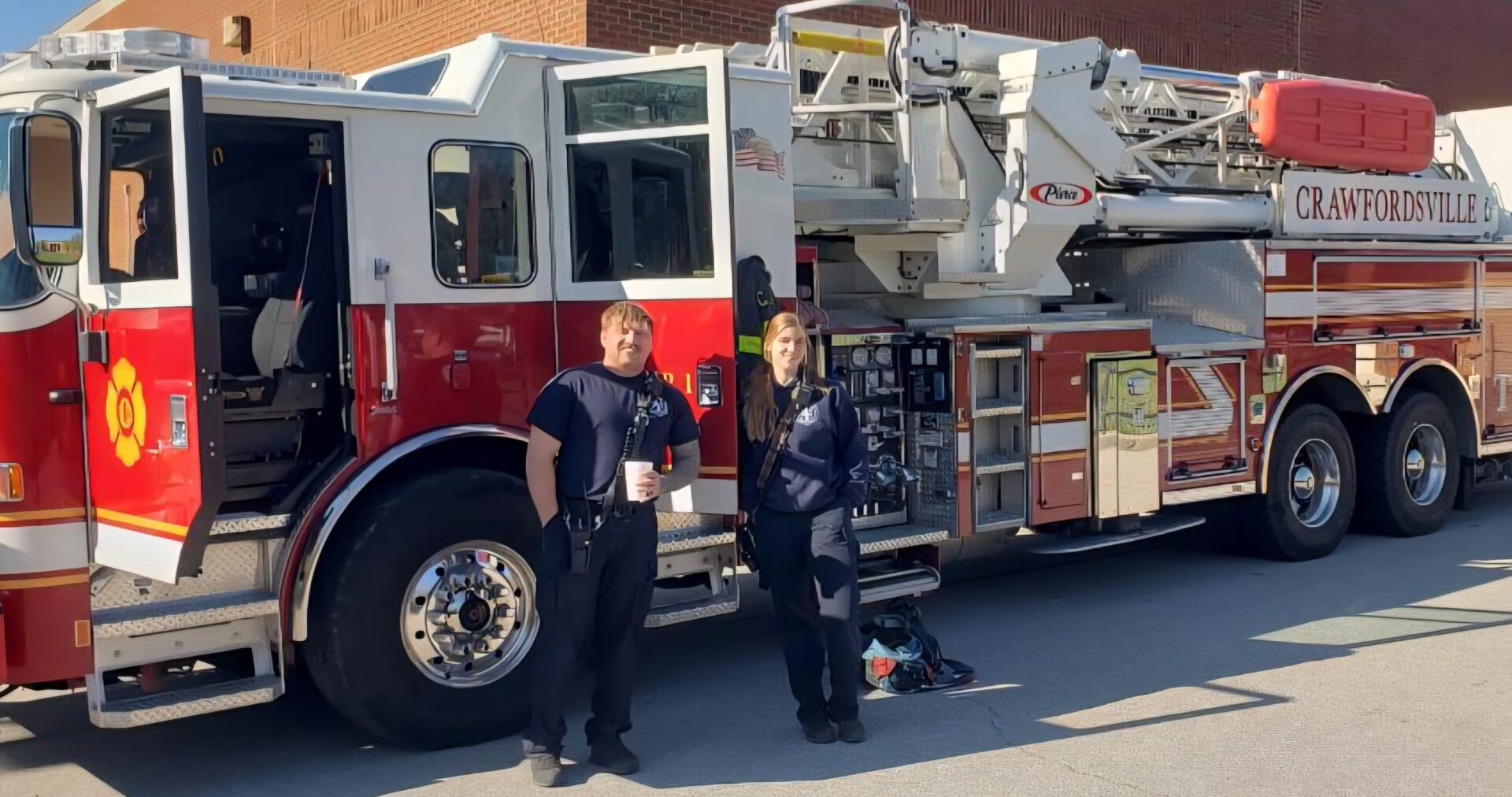 The Crawfordsville Fire Department extends their ladder. | Photo credit: Dave Peach.